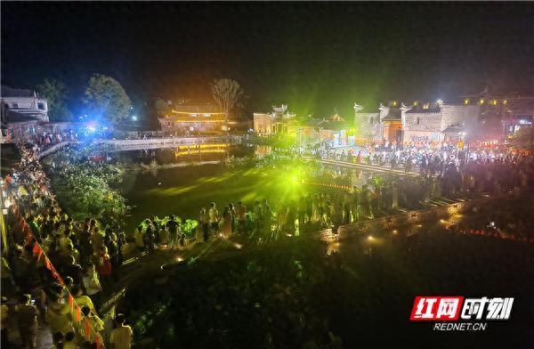 作为中方文旅的核心名片,荆坪古村“双节”期间精心策划多元活动,让传统文化与现代体验深度交融。月色浸润下的10月5日晚,三叠月塘畔“月归荆坪:荆坪不语・怀化原乡” 中秋音乐雅集温情启幕,《彩云追月》《但愿人长久》等经典曲目婉转流淌,湘西作家彭学明与游客共话中秋民俗,全场齐诵《水调歌头》的声浪与月色交织,定格成古村月夜最动人的剪影。