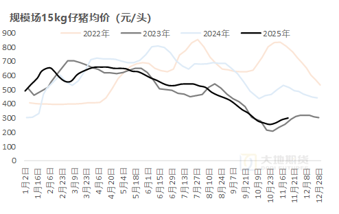 仔猪报价小幅调涨,询价有增但实际成交有限,关注其持续性及市场补栏表现。据涌益样本监测,截至11月14日,当周15kg仔猪市场均价300元/头,较前周涨14元/头。
