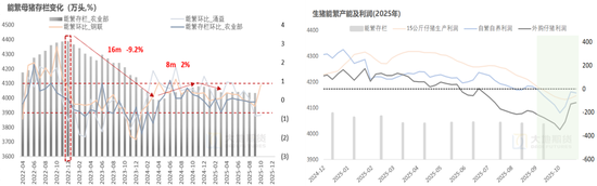 能繁产能:近空远多行业进入亏损状态,当下利润和政策角度来看去产具有一定理论上的驱动,淘母宰量有所增加,但多以低效产能为主,能繁去化速度还未见明显加快,持续磨底去产阶段。
