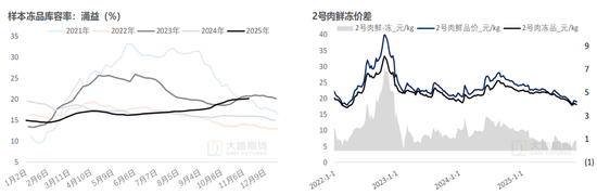 当下主动分割入库较少,被动入库仍存,鲜冻价差收窄下冻品端消化也受到一定影响,冻品库存维持小幅增加态势。关注后续需求增量启动下冻品消化速度。